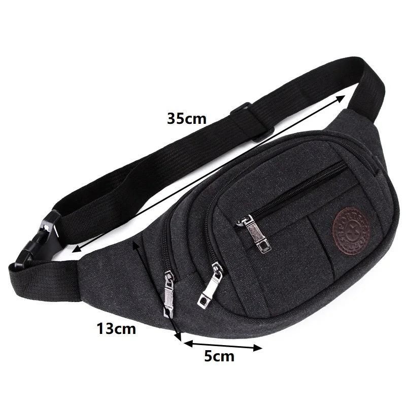 This fanny pack is designed for men and offers a secure way to carry your essentials while traveling. It features multiple compartments and can hold items like phones, money, and cigarettes.