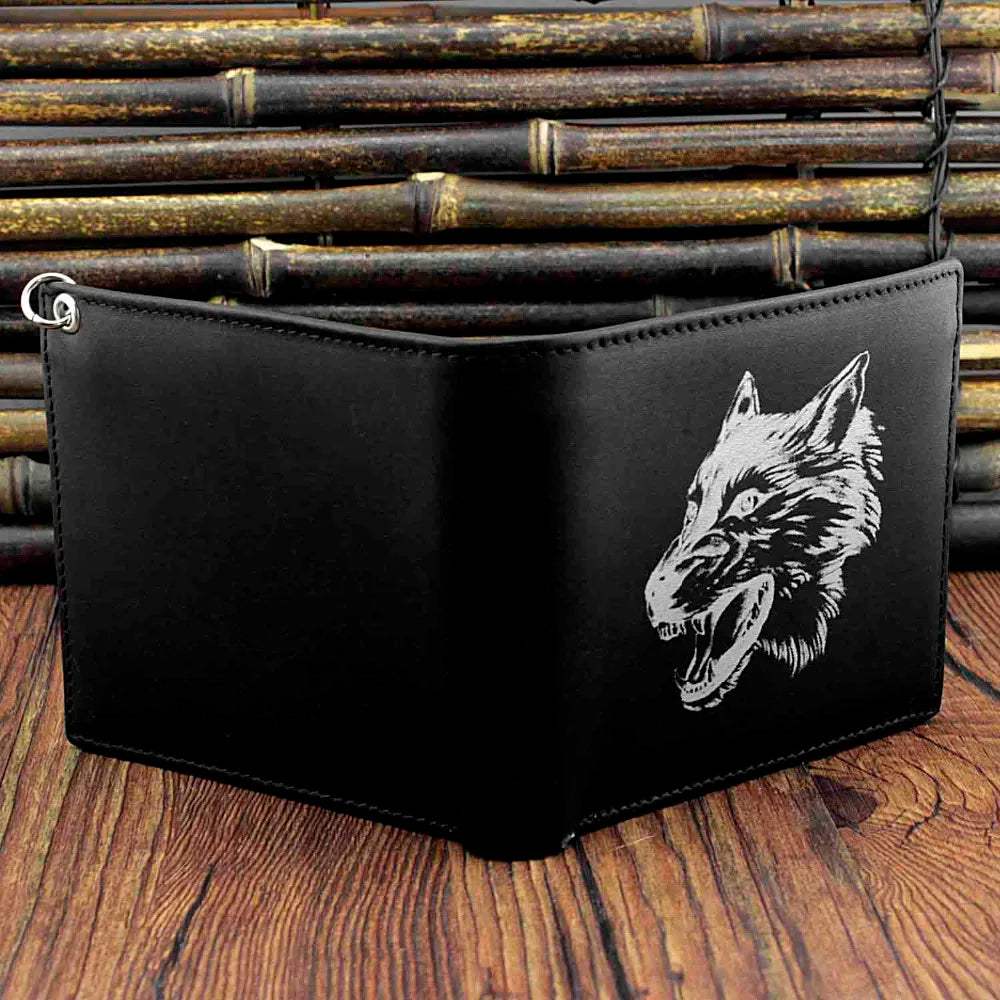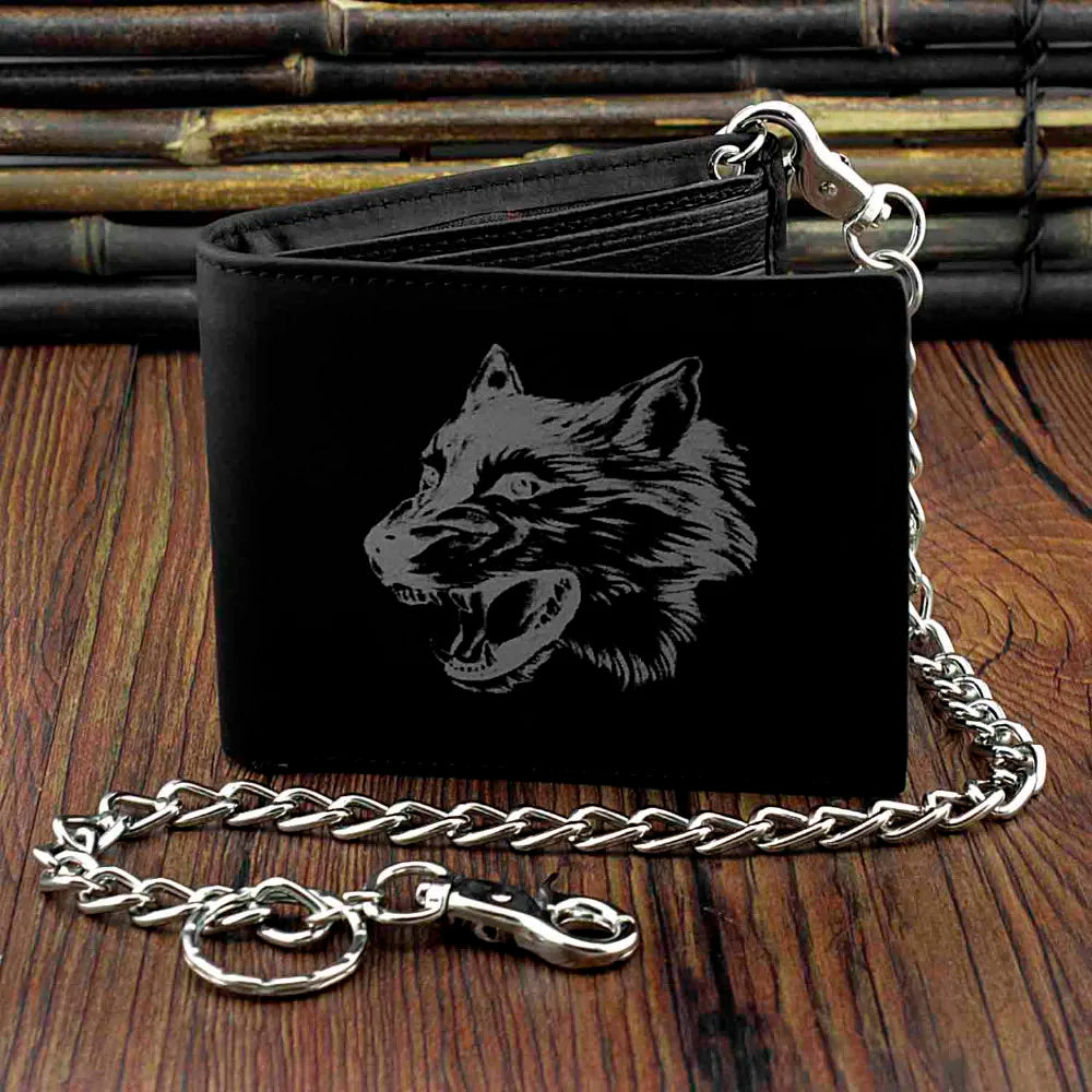 Keep your essentials safe in style with this wolf leather wallet featuring a biker chain. Perfect for daily use or as a gift.