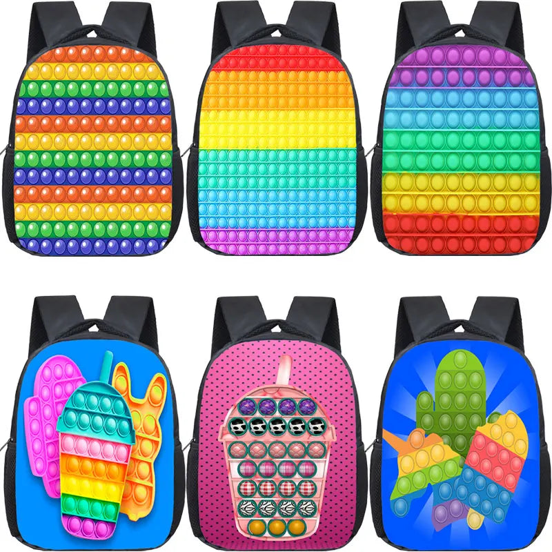 12 Inch POP Its Kindergarten Backpack - Rainbow Design