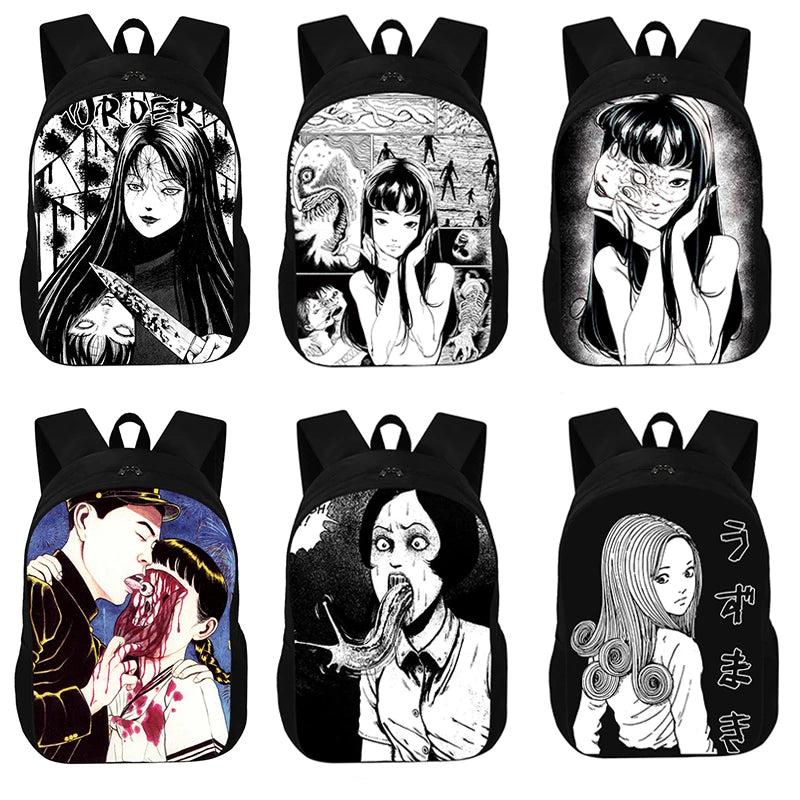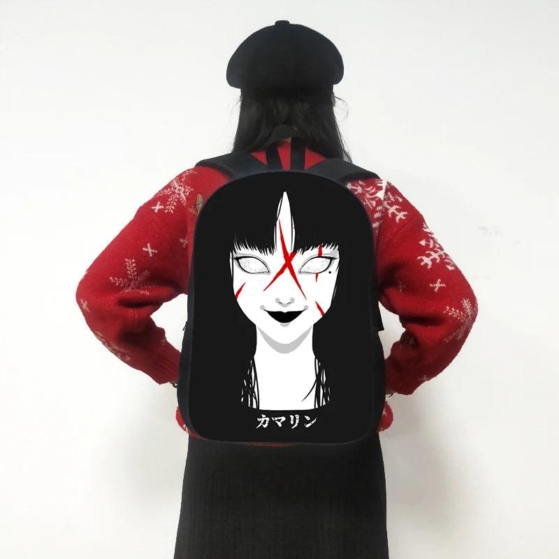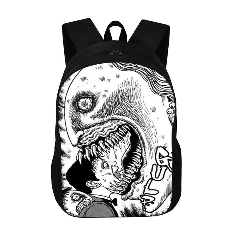 This cartoon horror manga backpack features a unique Jorogumo and Sluggirl design perfect for teenagers. It's a single layer book bag ideal for school use.