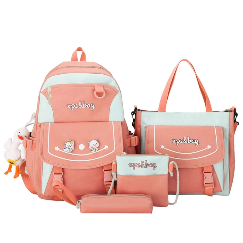 - Includes 4pcs of cartoon nylon school backpacks, shoulder bags, and pencil case