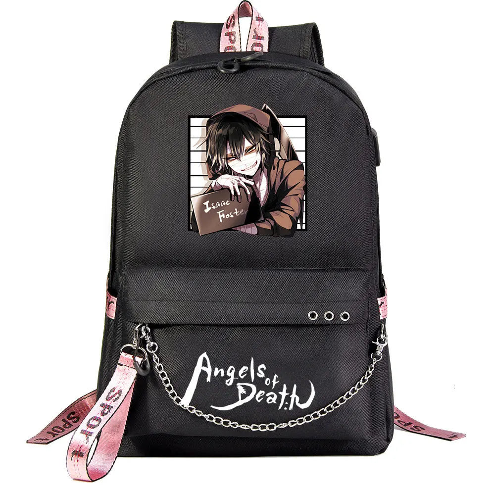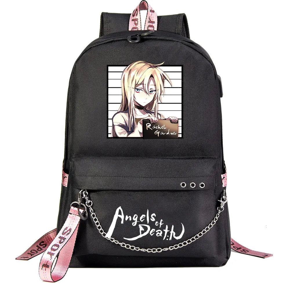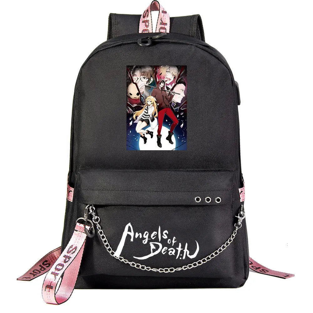 Anime Angel Death Backpack School Book Bags Travel Boys Girls Laptop USB Port