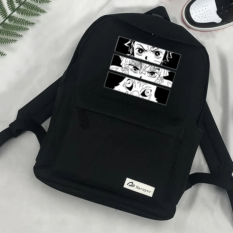 This schoolbag backpack features a popular Japanese anime design from Demon Slayer Kimetsu No Yaiba. Perfect for teenagers, it is suitable for carrying a laptop, books, and other essentials, making it ideal for school or travel.