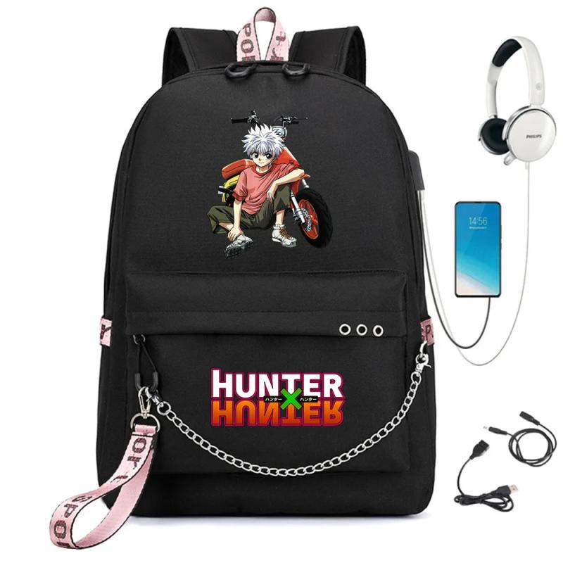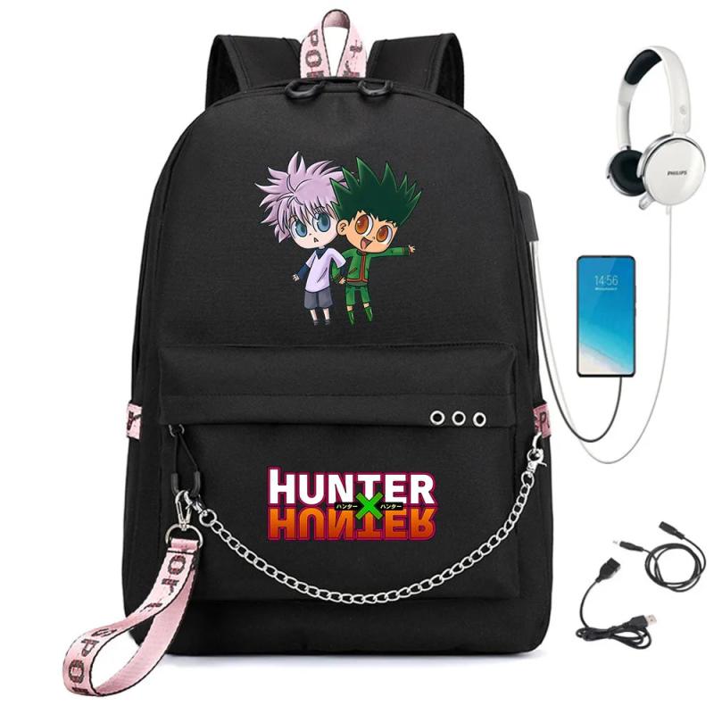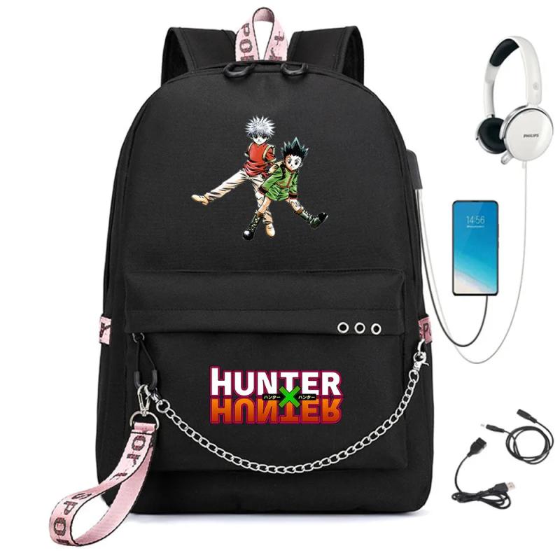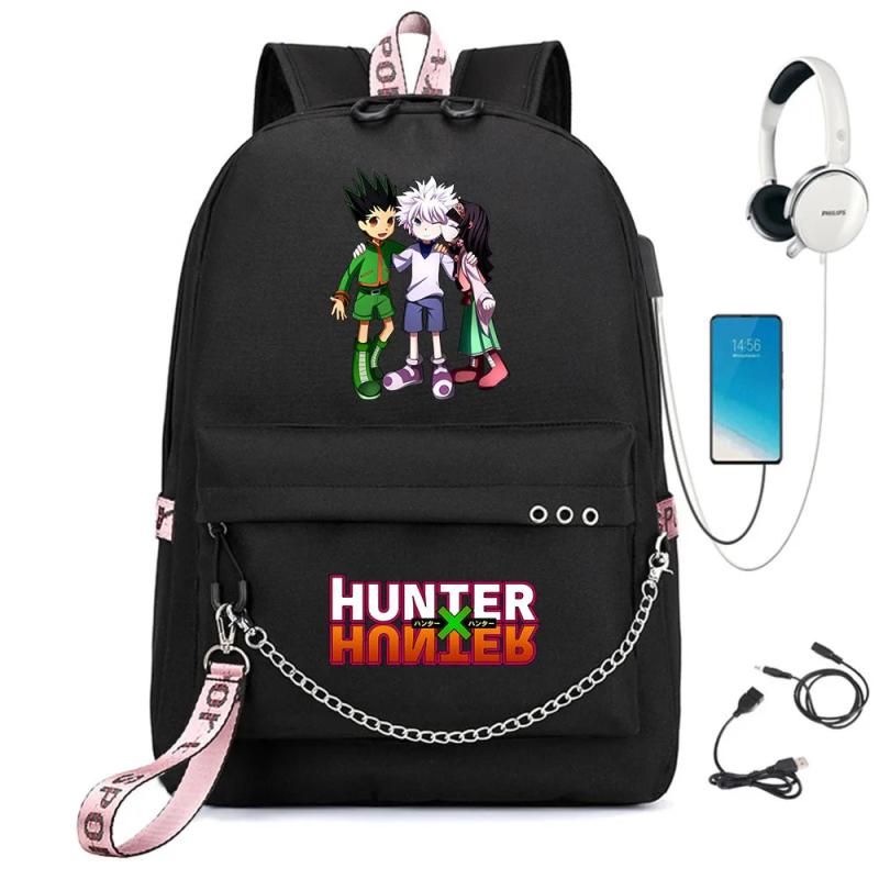Anime Hunter Nylon Backpack Schoolbag Casual USB Charge Cartoon Teenger T