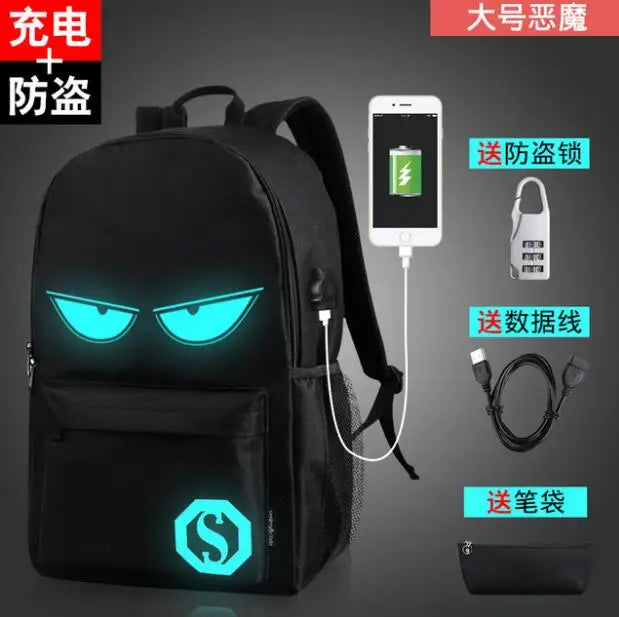 This school bag backpack is perfect for boys and girls, featuring an anime luminous design. It comes with a multifunction USB charging port and a lock for added security.