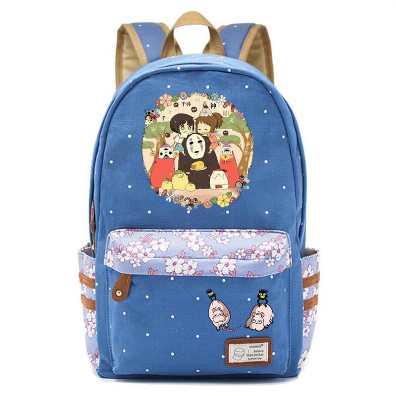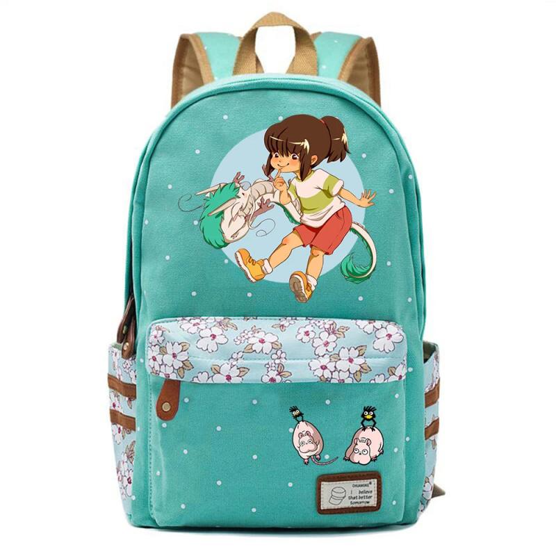 Anime Spirited Away Canvas Backpack Teenger Packsack Casual Zip Schoolbag