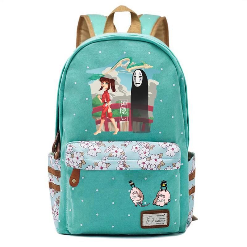 High quality canvas backpack inspired by the anime Spirited Away. Ideal for teenagers as a casual school bag with a convenient zip closure.