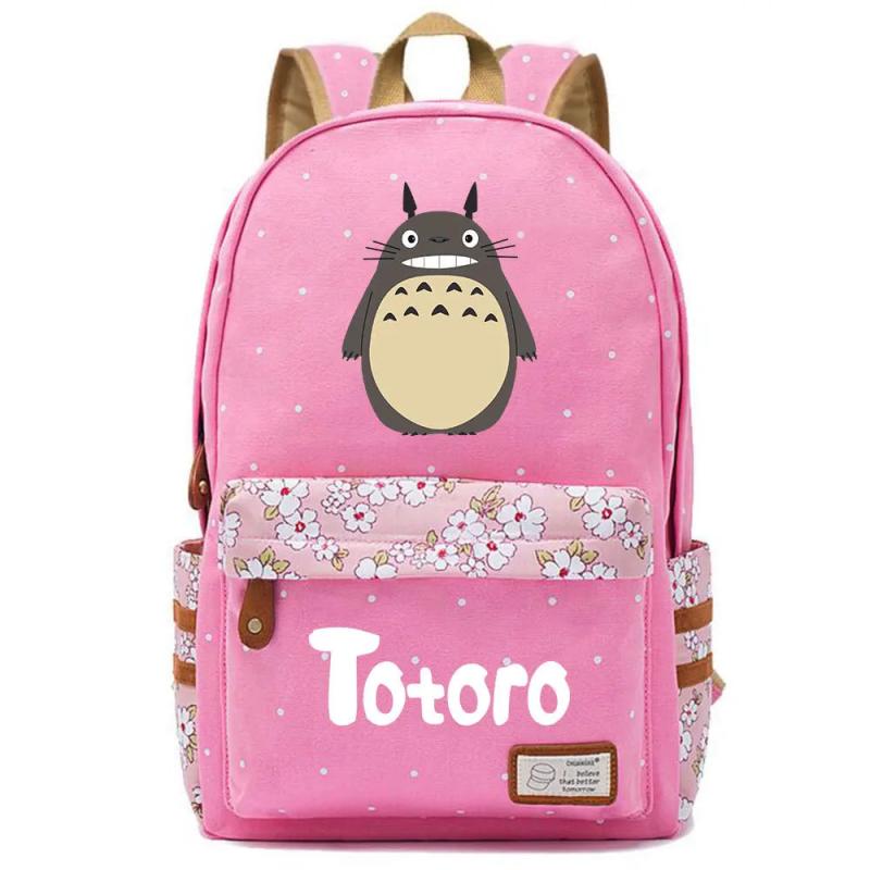 Anime Totoro Casual Pink Backpack Unisex Student Cartoon Schoolbag