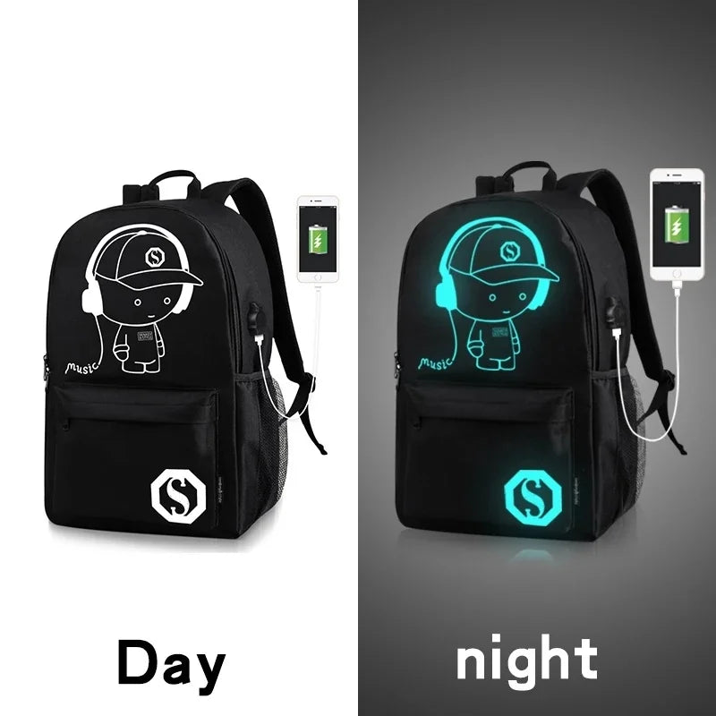 Anime USB Charge School Backpack Music Luminous Schoolbag