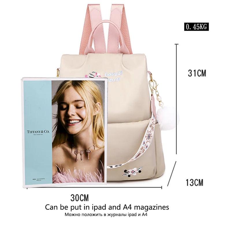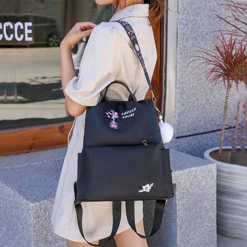 Stay stylish and secure with this multifunctional embroidered backpack made from durable Oxford cloth. The large capacity design is perfect for teenagers, providing ample space for all your essentials.