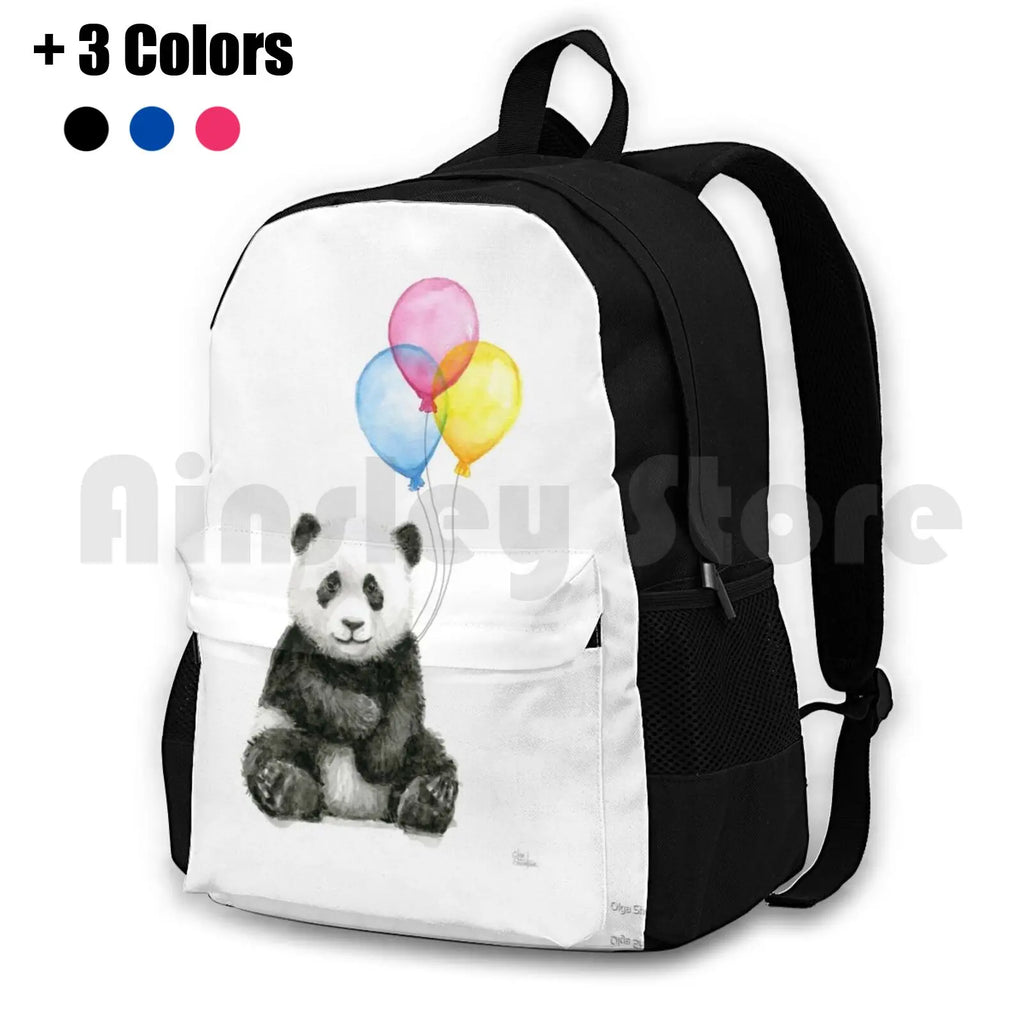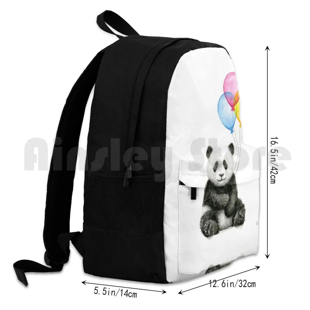 This adorable backpack features a baby panda watercolor design with balloons, perfect for outdoor hiking, camping, or travel. The waterproof material ensures durability and functionality.