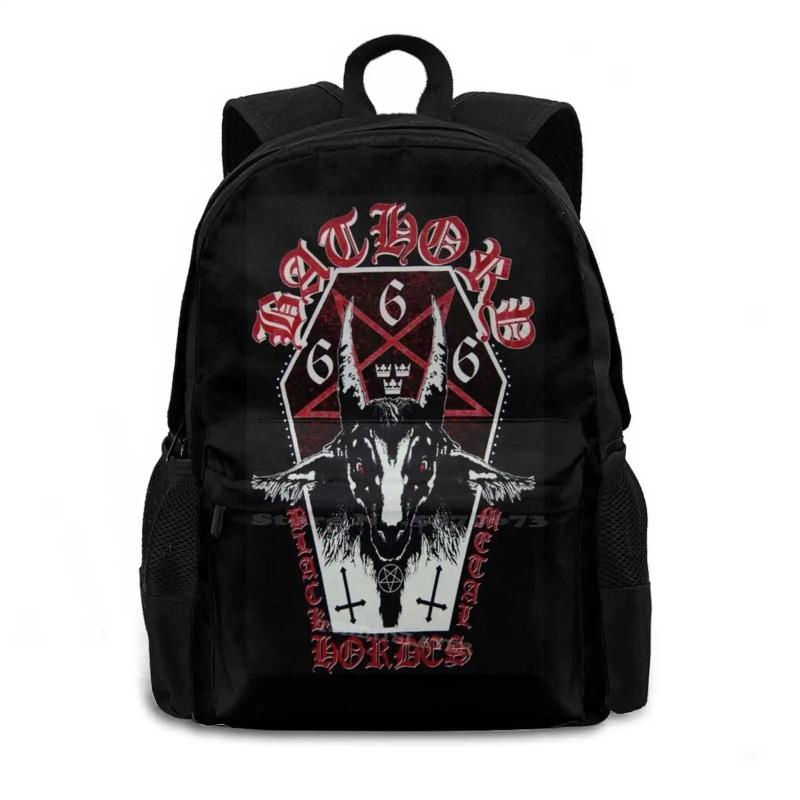 Show off your metal style with this high-capacity school bag featuring a bold Bathory design. Fits laptops up to 15 inches. Perfect for any metalhead on the go!