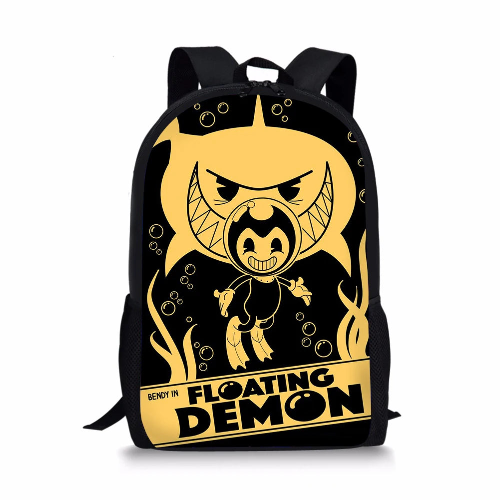 This school backpack features a cool Bendy-Ink-Game pattern which is perfect for students. It is designed for teenagers and can hold all their books and essentials.