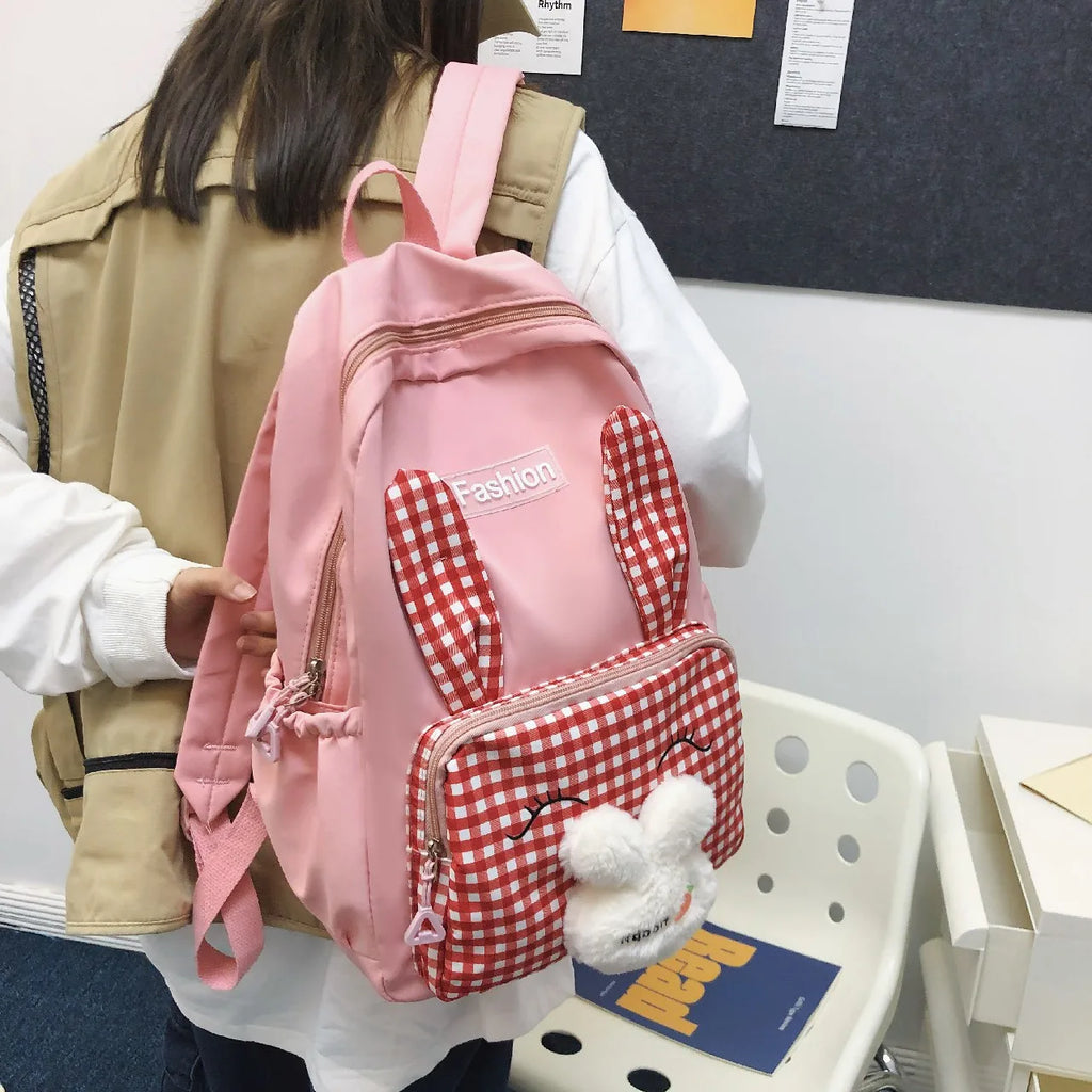 Big Student Backpack Face Rabbit Rucksack Girls School Bag