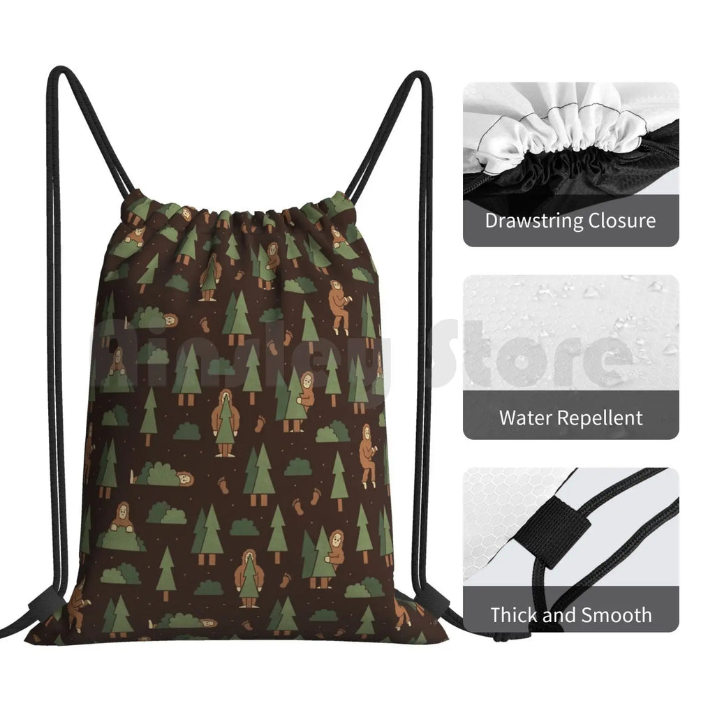 Bigfoot Forest Backpack Drawstring Bag Riding Climbing Gym Bag Sasquatch Pattern