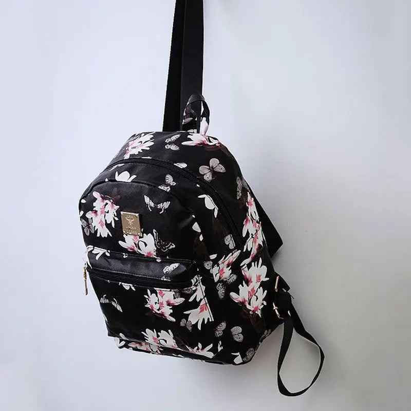 This backpack features a floral pattern design made from high-quality PU leather, perfect for leisure travel and school.