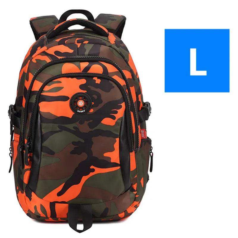 Camouflage Waterproof Nylon School Bag for Kids Orthopedic Backpack