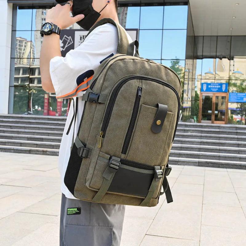 This canvas backpack is ideal for travel, school, or outdoor activities. It has a large capacity and is designed for students and professionals.