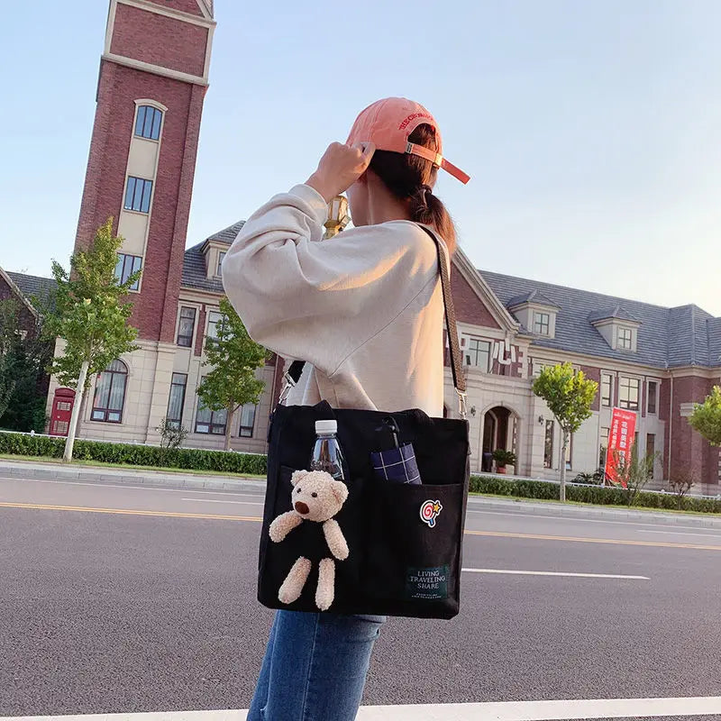 This canvas bag is perfect for students and versatile enough for everyday use. With a large capacity, it can hold all your essentials. The shoulder bag design allows for comfortable carrying.