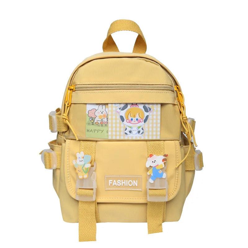 This mini canvas backpack is perfect for casual outings or shopping. It features candy colors and a cartoon Harajuku style, making it a fun accessory. The lightweight design makes it ideal for travel.