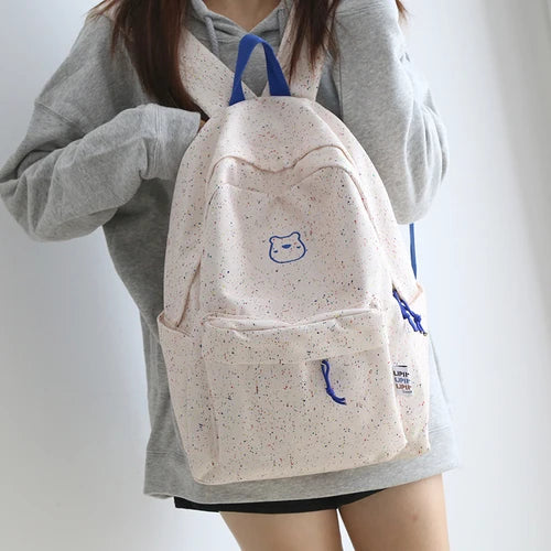 This canvas schoolbag is perfect for junior and college female students. It is ideal for carrying books, notebooks, and other essentials.