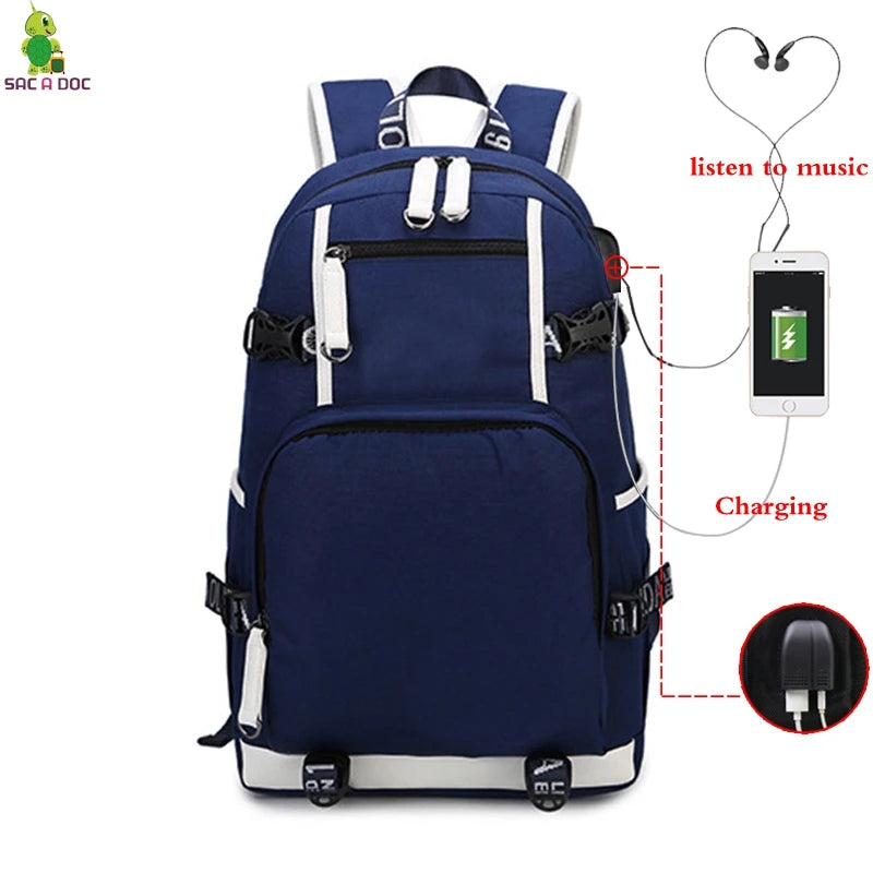 Canvas USB Charging Backpack Large Laptop Bag Casual Mochila