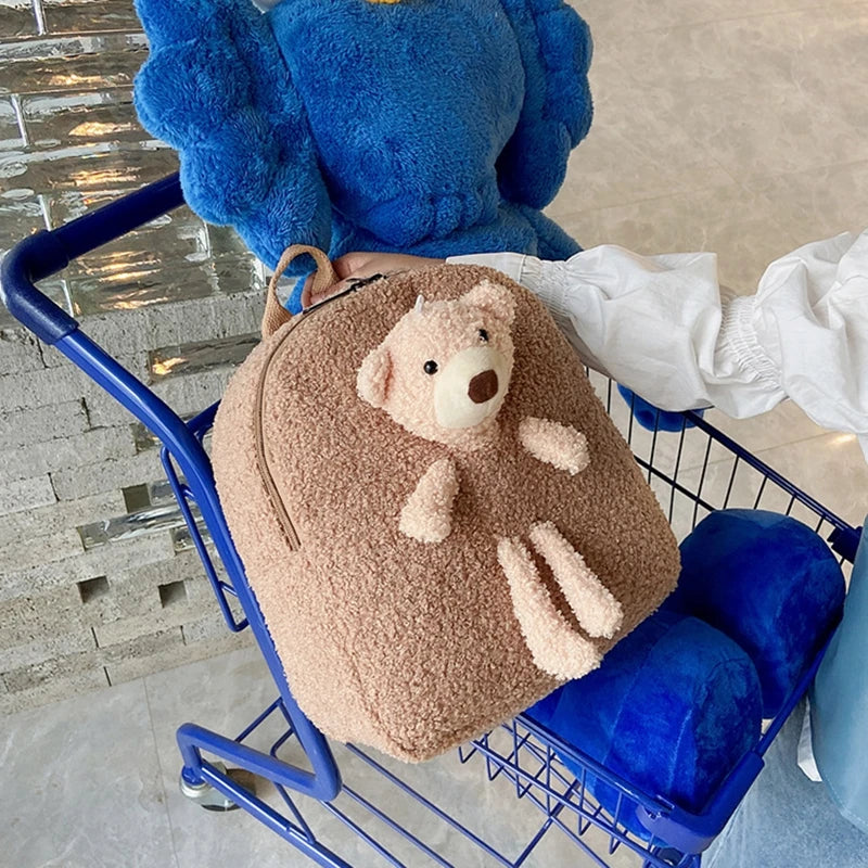 This adorable kids backpack features a cute cartoon bear design with a 3D plush finish. It is perfect for travel and school with its large capacity and secure zipper closure.