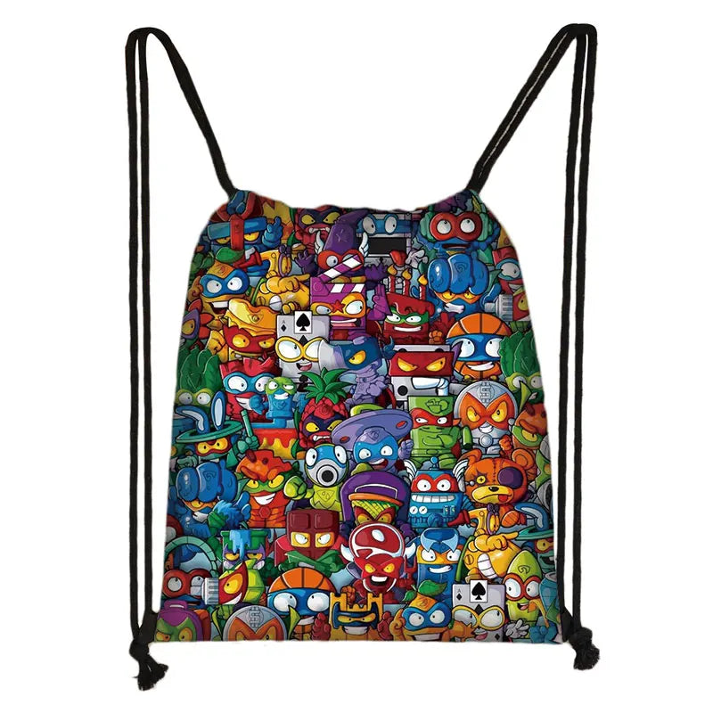 This cartoon-themed drawstring bag is perfect for boys and girls to carry their belongings in style. It is ideal for casual outings and back-to-school use.