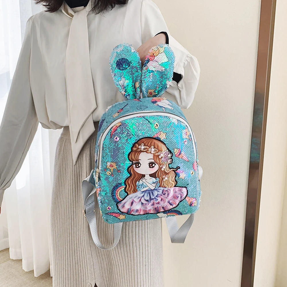 This backpack features cute cartoon design with sequins and LED light for added fun. It is perfect for school or casual outings.