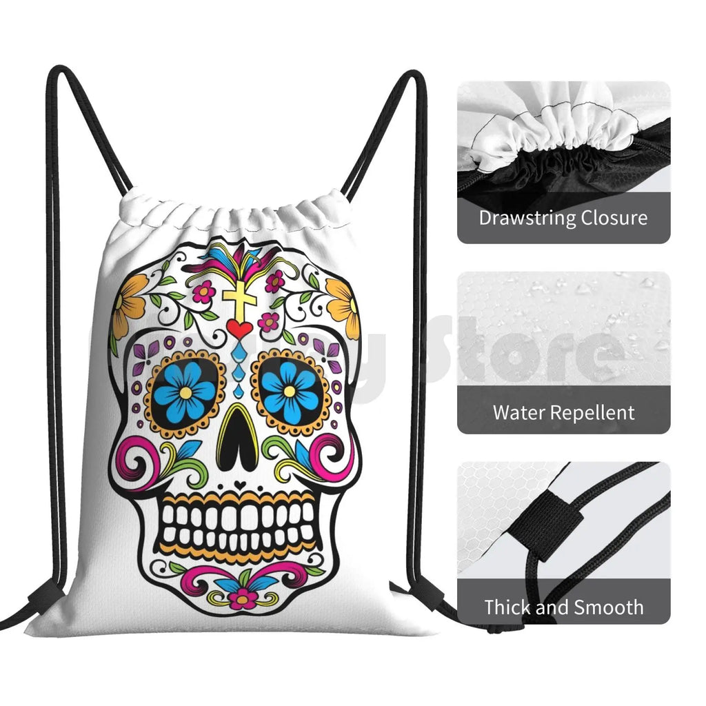 Catrina Sugar Skull Backpack Drawstring Bag