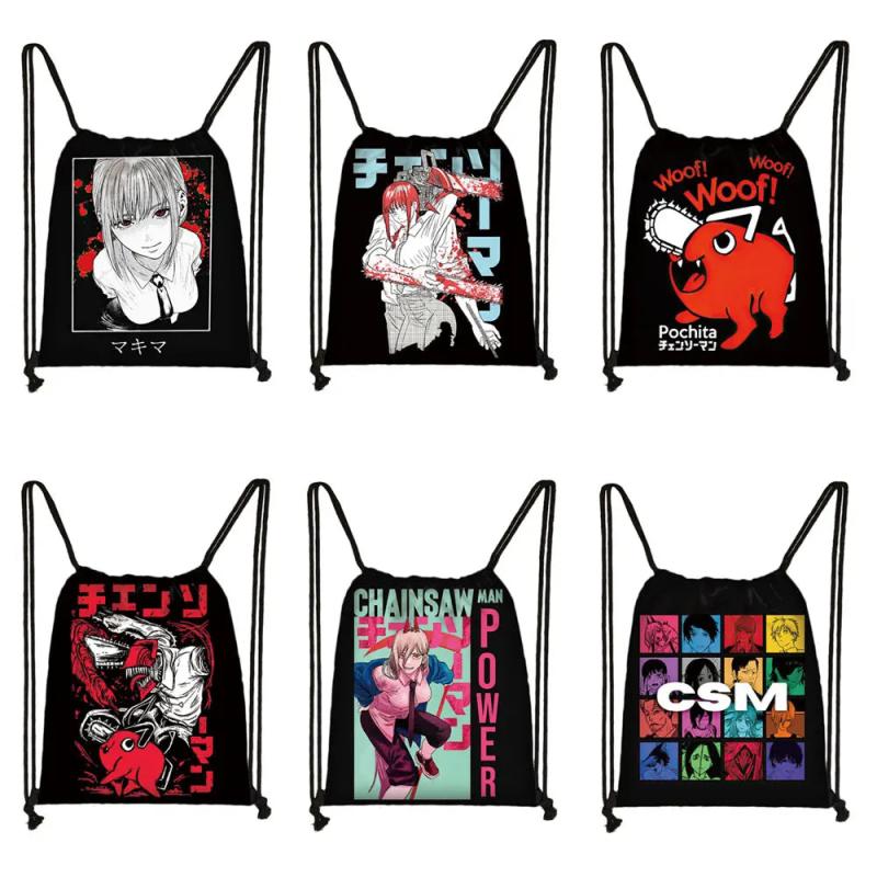 Chainsaw Man Backpack Denji Pochita Drawstring Bags Makima Power Manga