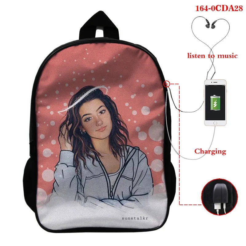 - Stylish and durable backpack featuring Charli Damelio