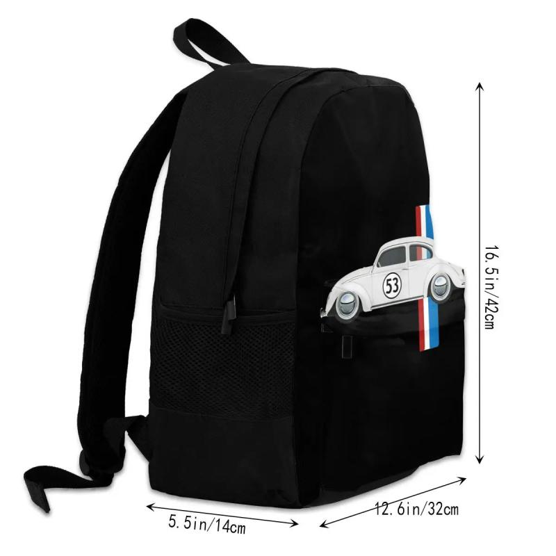 This classic vintage car-themed backpack is perfect for swimming, outdoor activities, and running. It features a unique design inspired by the popular 53 Bug Buggy Beetle Herbie.