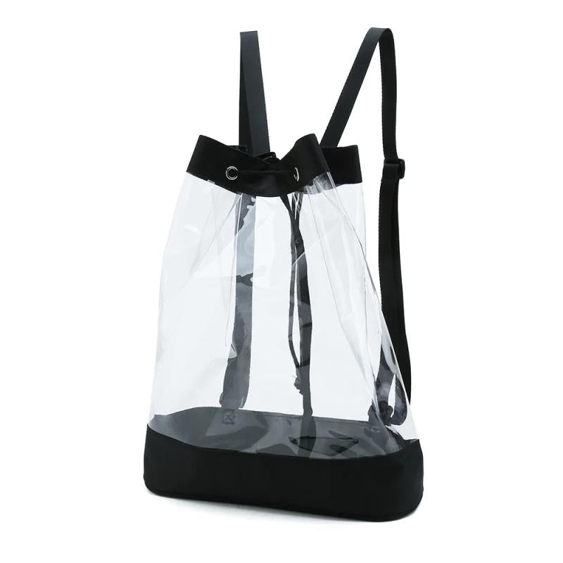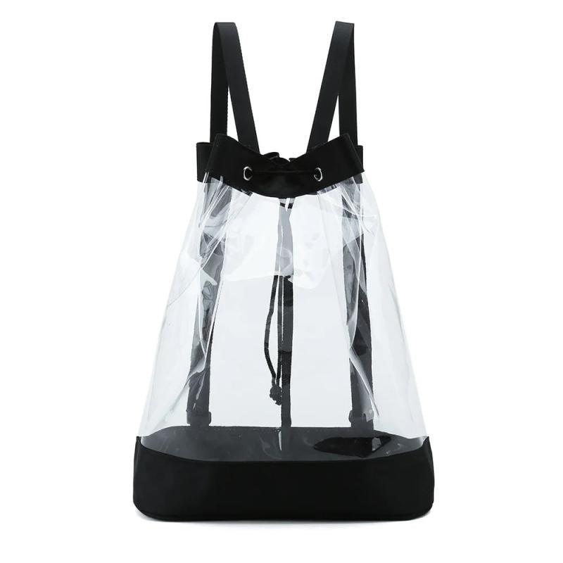 Stylish and convenient clear drawstring backpack for easy visibility of contents. Ideal for school, sports, and events.