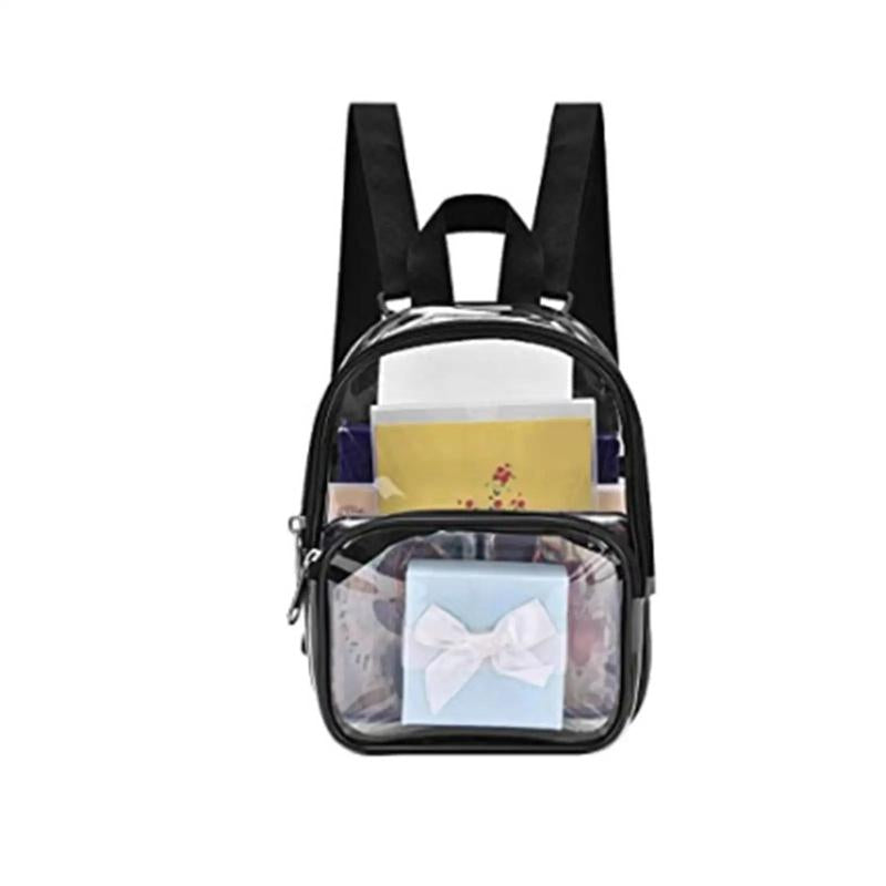 This durable clear backpack is perfect for sports, work, beach, and outdoor activities. Made of PVC material, it is water resistant and easy to clean.