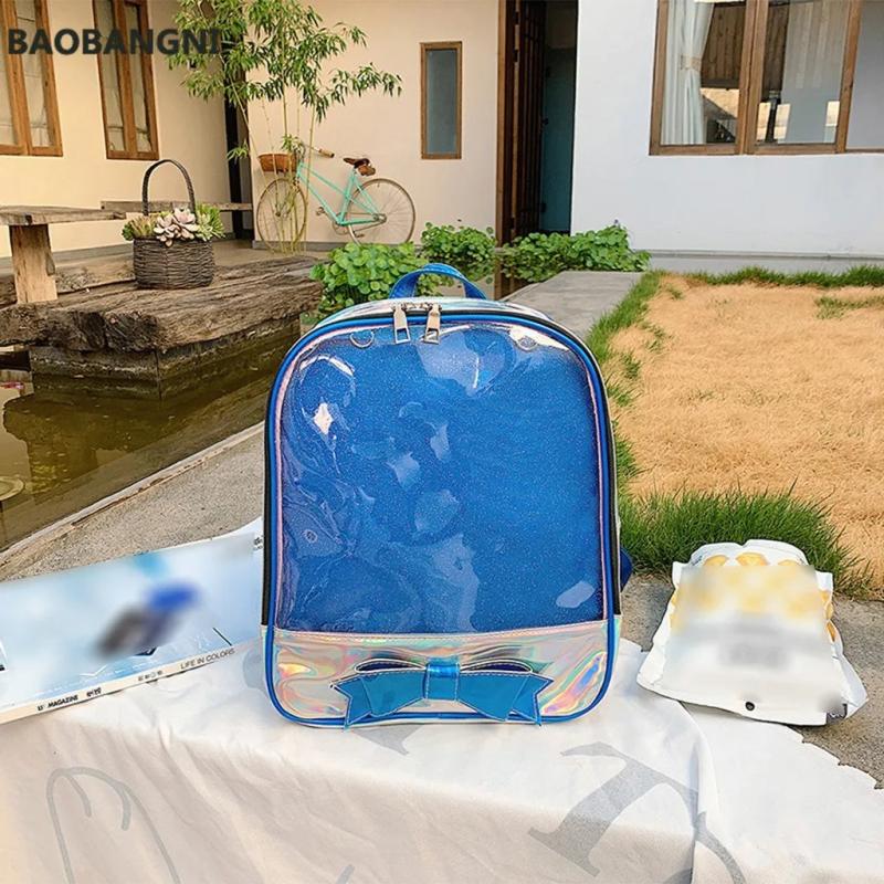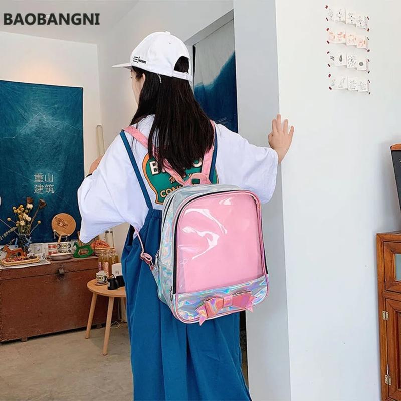 Clear Transparent Backpack School Bags for Teenage Girls Ladies Bowknot Shoulder