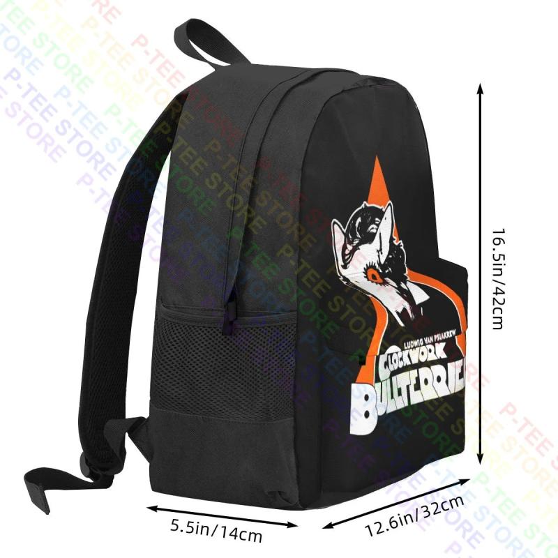 Stay organized and stylish with this unique Clockwork Bull Terrier backpack. Ideal for training, gym, school, or sports use.