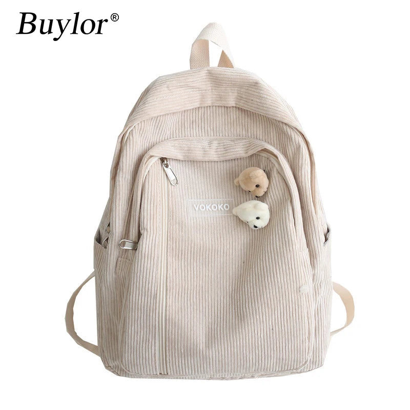 Corduroy Backpack Stripe Schoolbag for Teenager Girls Boys