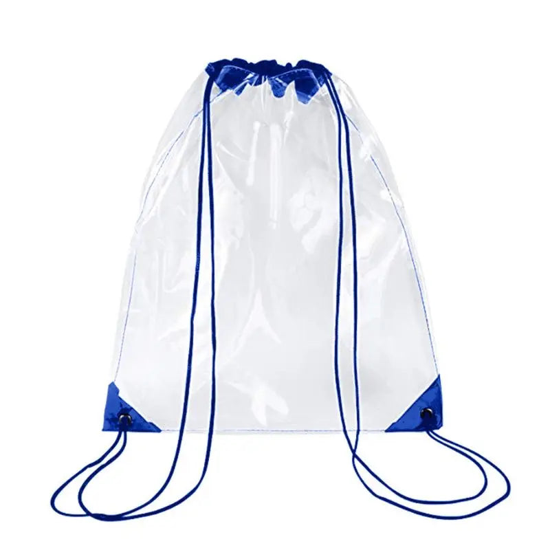 This transparent drawstring backpack is perfect for school, gym, sports, and more. It offers convenience and style.