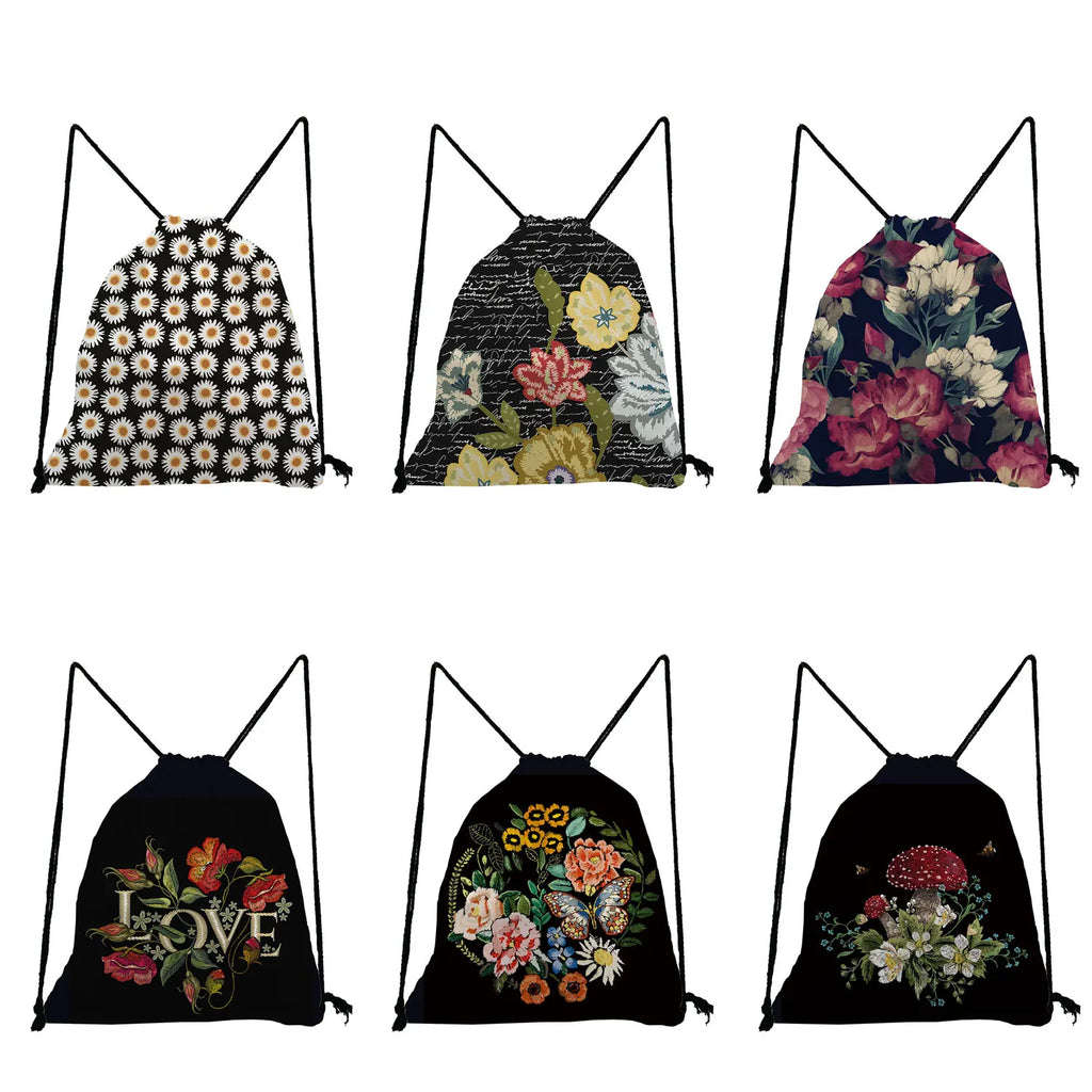 Daisy Print Backpack Drawstring Bag Unisex Shoe Bag