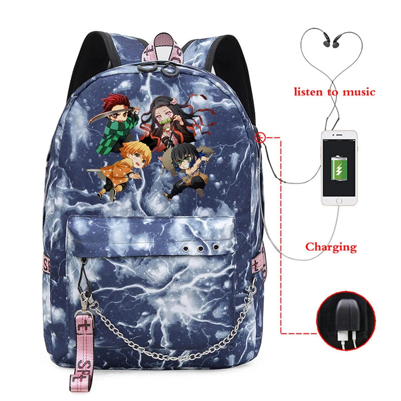 Stay stylish and secure with this Demon Slayer themed anti-theft backpack. Made of waterproof fabric, it's perfect for everyday use.
