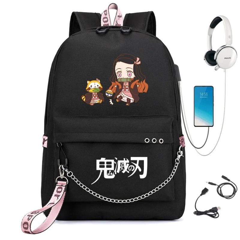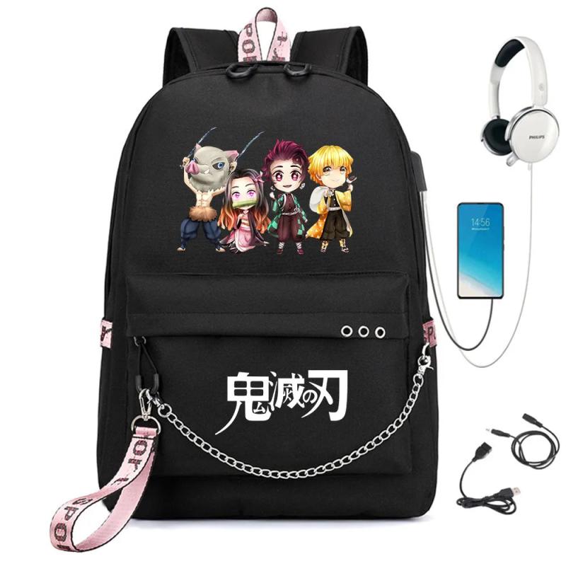 Demon Slayer Kimetsu no Yaiba Nylon Backpack Schoolbag Casual USB