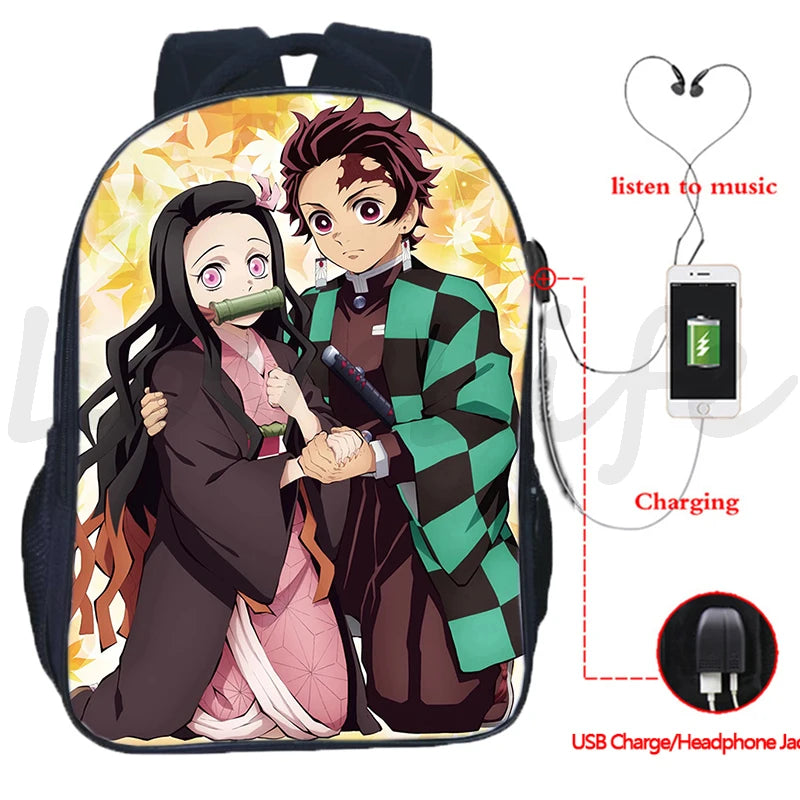 Demon Slayer Tanjirou Nezuko Anime School Backpack with USB Charging