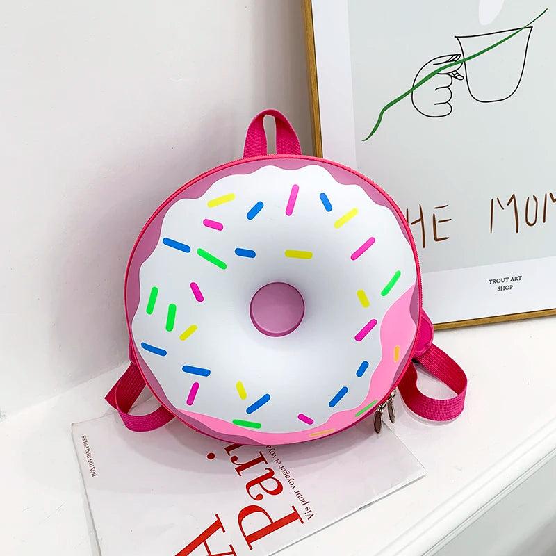 This adorable donut-shaped cartoon backpack is perfect for children and kids. It features a two-way zipper for easy access and is waterproof to protect belongings.