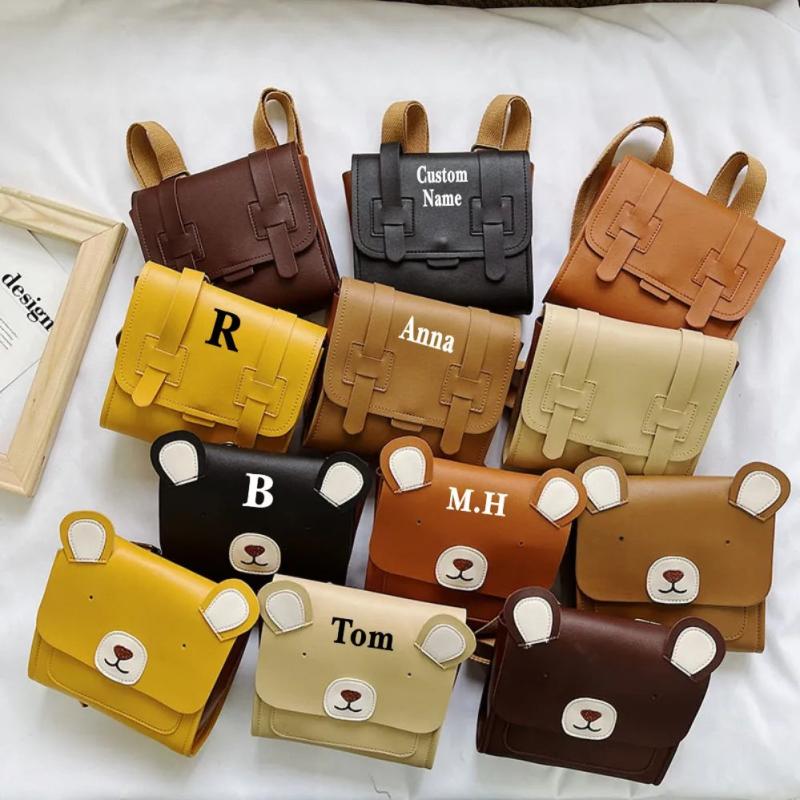 This cute toddler bag features personalized embroidery of a bear design, perfect for children to carry their essentials. Made for boys and girls, this mini school bag is also a great crossbody accessory for kids.
