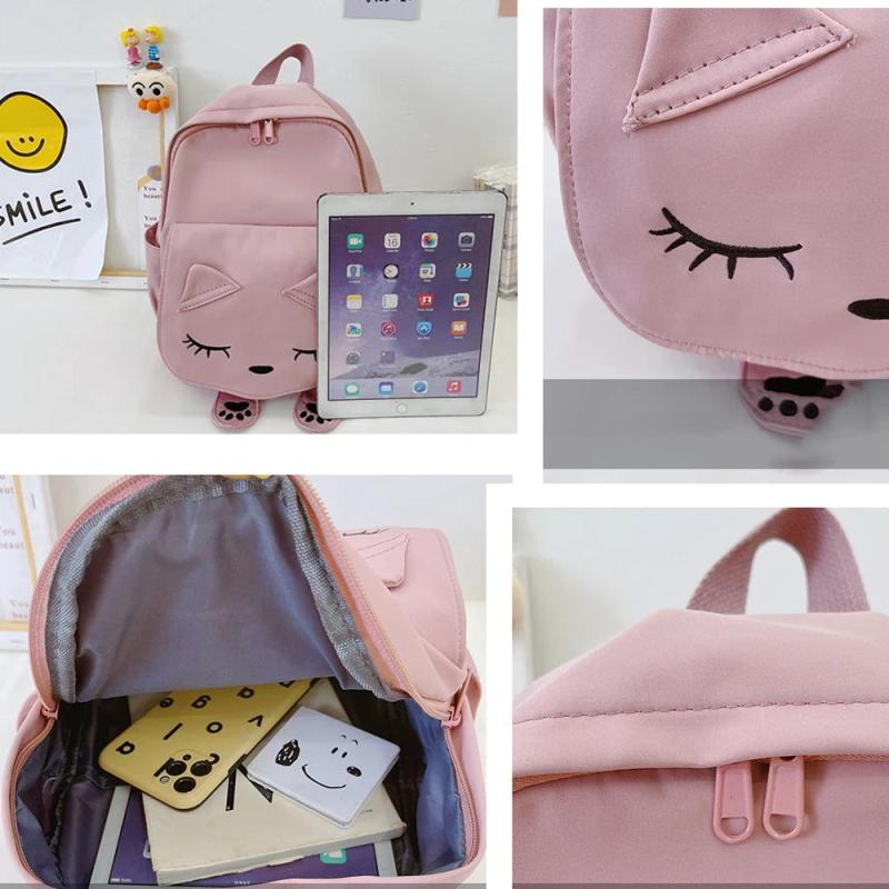 This cute backpack features an embroidered cat design, making it perfect for children to carry their essentials while traveling or going to school. It's durable and comfortable to wear.