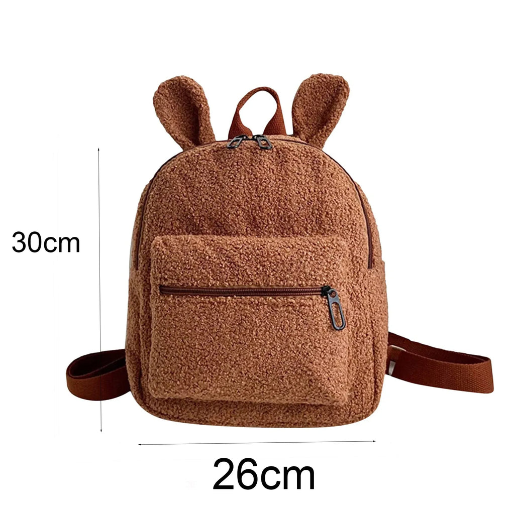 This adorable backpack features a cute fuzzy rabbit design, perfect for girls. The backpack is made of plush material and has a zipper open design with bunny ears for added charm.