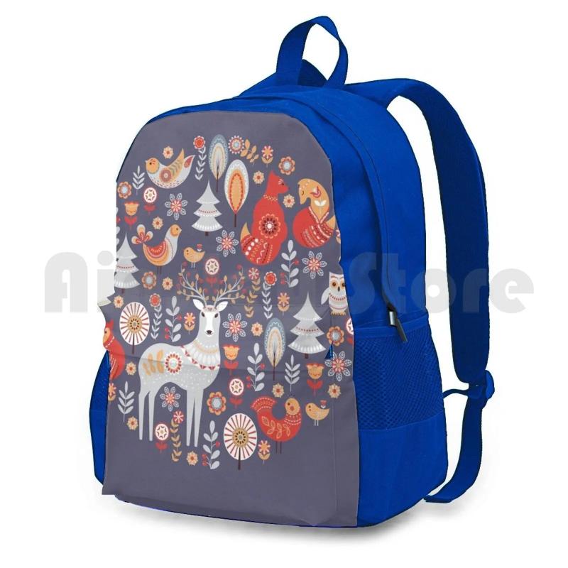 Experience the enchantment of the forest with this whimsical hiking backpack featuring a design of foxes, deer, birds, and owls amidst a backdrop of colorful flowers and herbs. Perfect for outdoor adventures!