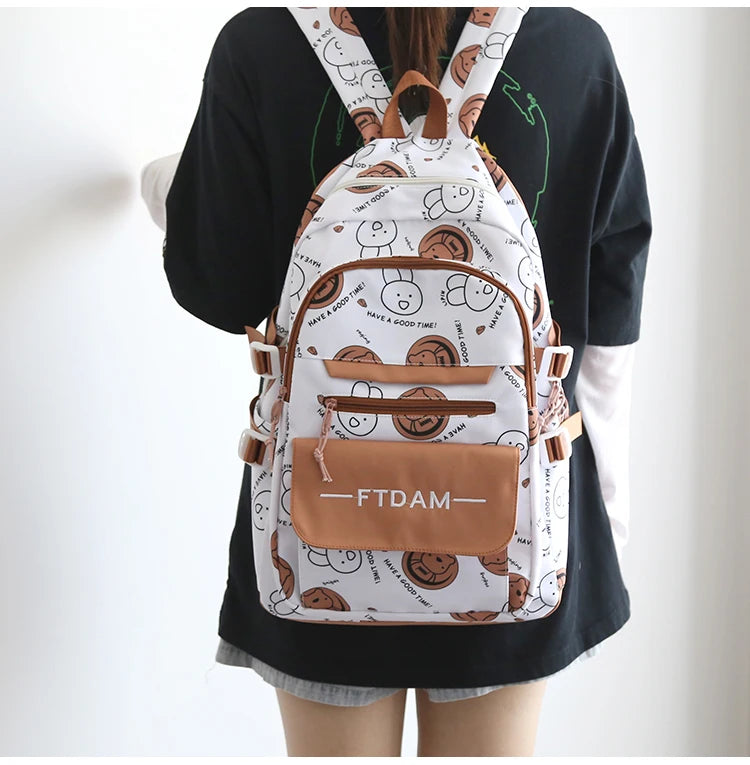 This stylish female campus schoolbag is perfect for junior school and college students. It features a spacious design and comfortable shoulder straps.
