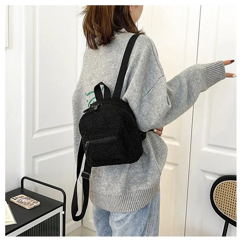 Female Mini Plush Backpack Solid Little Girls Wild Soft Autumn Winter Small Dayp